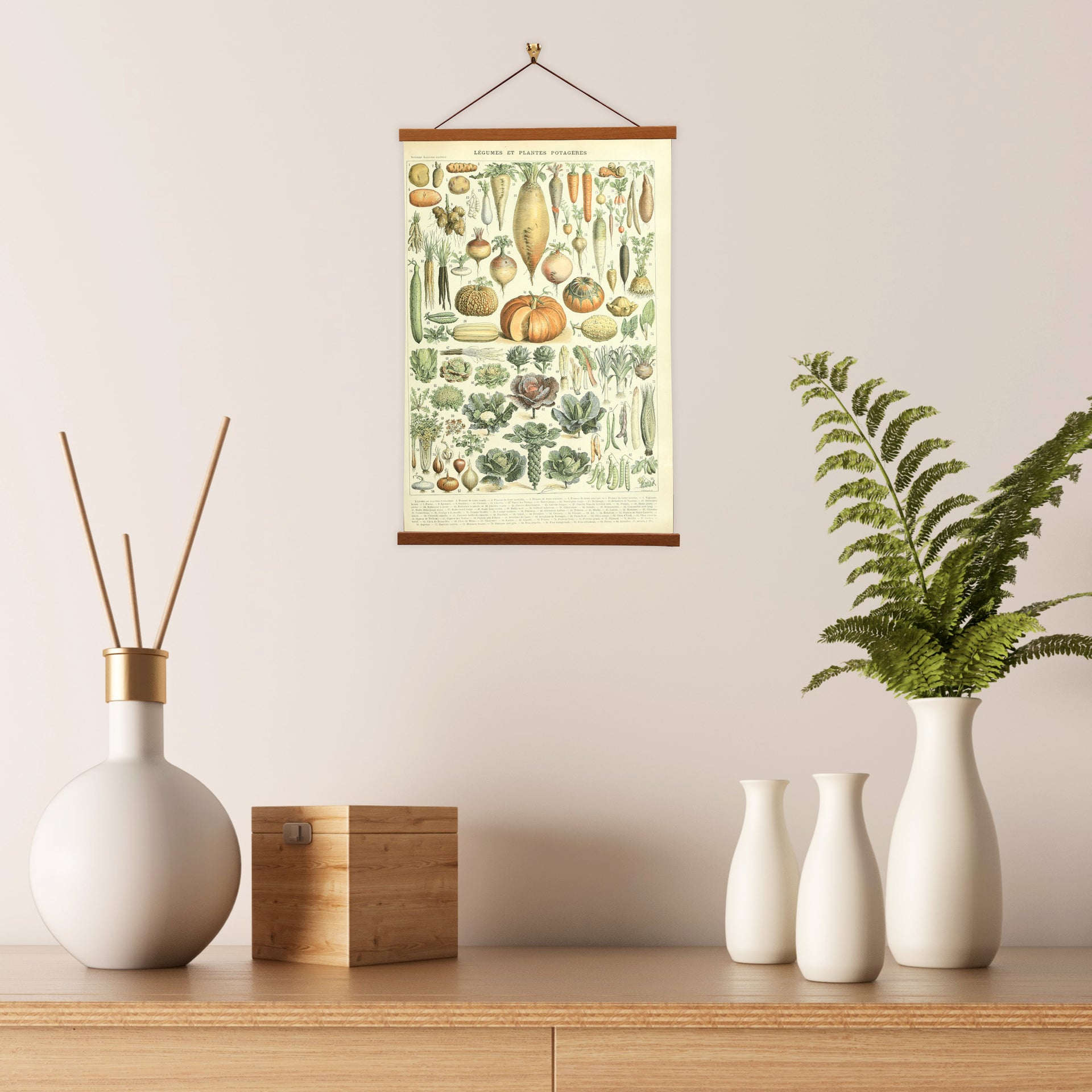 Our posters is elegantly suspended from a magnetic hanger crafted from rich walnut-colored wood, accentuated by a rustic rawhide string for a timeless and sophisticated display. Transform your space with this combination of artistry and craftsmanship.