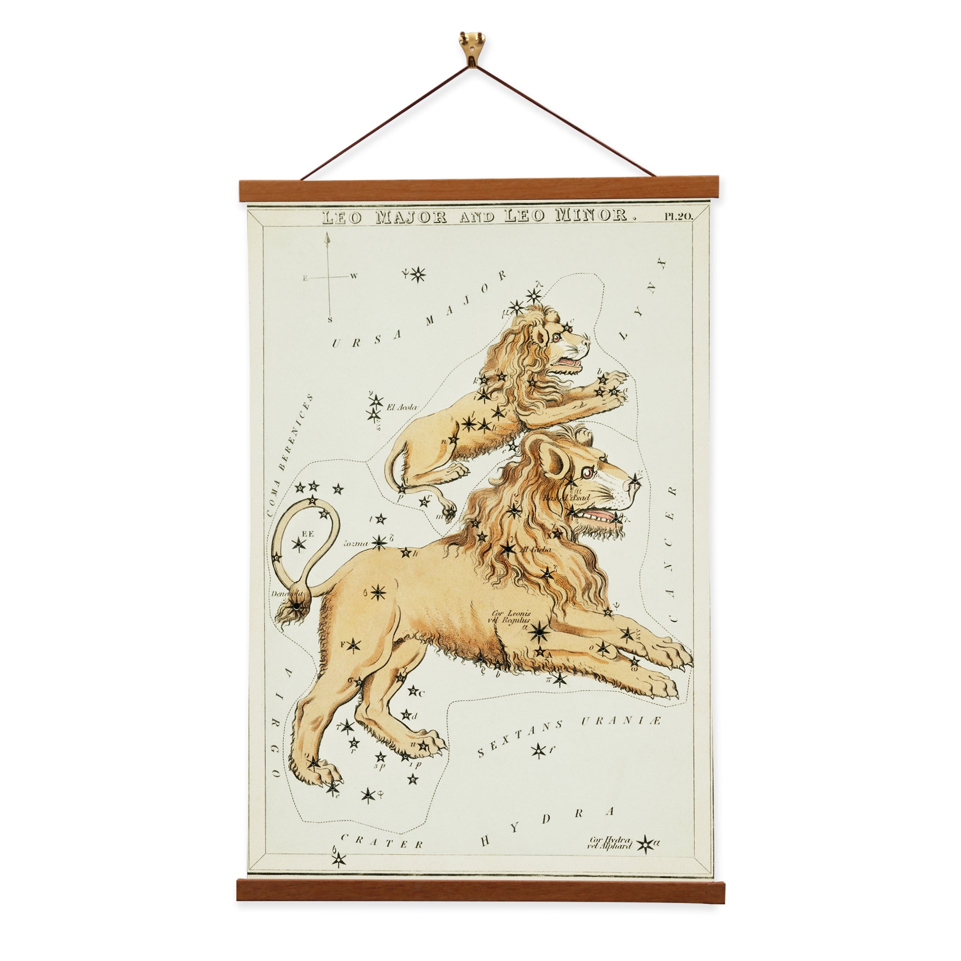 Leo Major is a brilliant constellation in the night sky, depicted by Sidney Hall. Leo Major features the majestic Lion, comprising distinctive stars forming its body and a striking mane. Sidney Hall's Leo Minor, on the other hand, showcases a neighboring, smaller constellation, often overshadowed by its grand celestial neighbor, Leo Major.