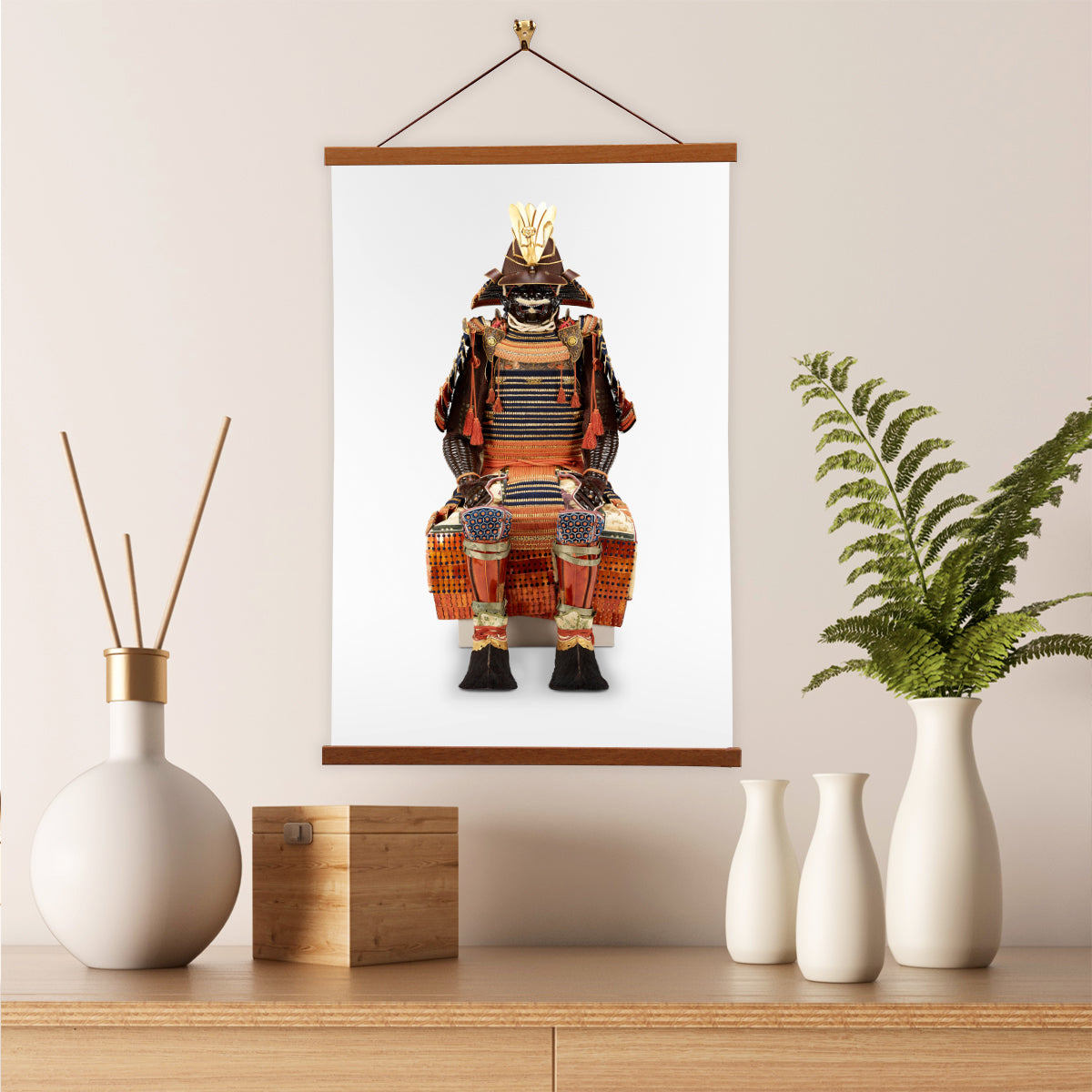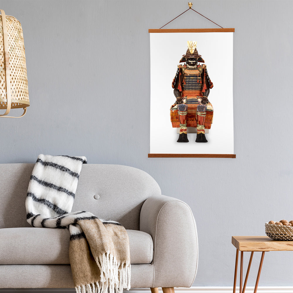Our posters is elegantly suspended from a magnetic hanger crafted from rich walnut-colored wood, accentuated by a rustic rawhide string for a timeless and sophisticated display. Transform your space with this combination of artistry and craftsmanship.