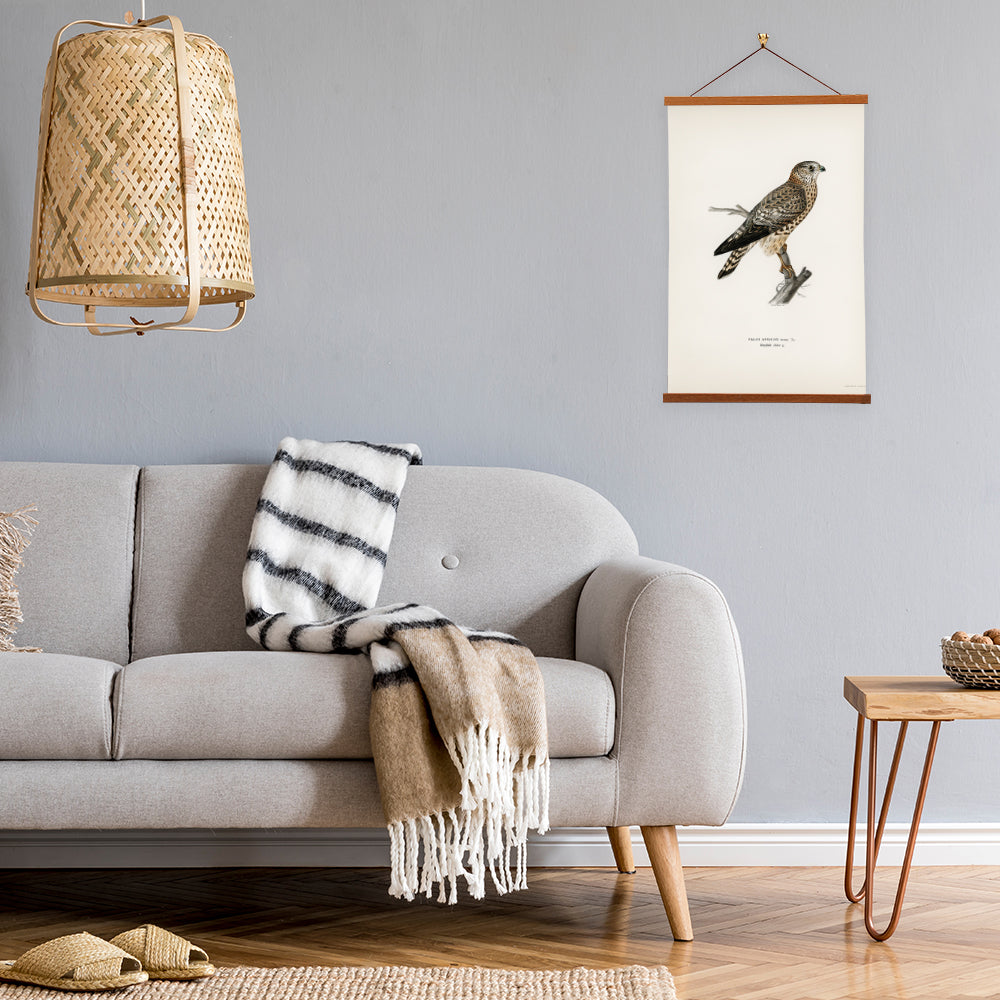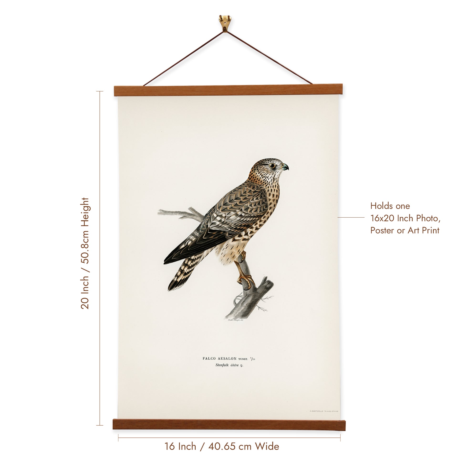 Our posters are elegantly suspended from a magnetic hanger crafted from rich walnut-colored wood, accentuated by a rustic rawhide string for a timeless and sophisticated display. Transform your space with this combination of artistry and craftsmanship.