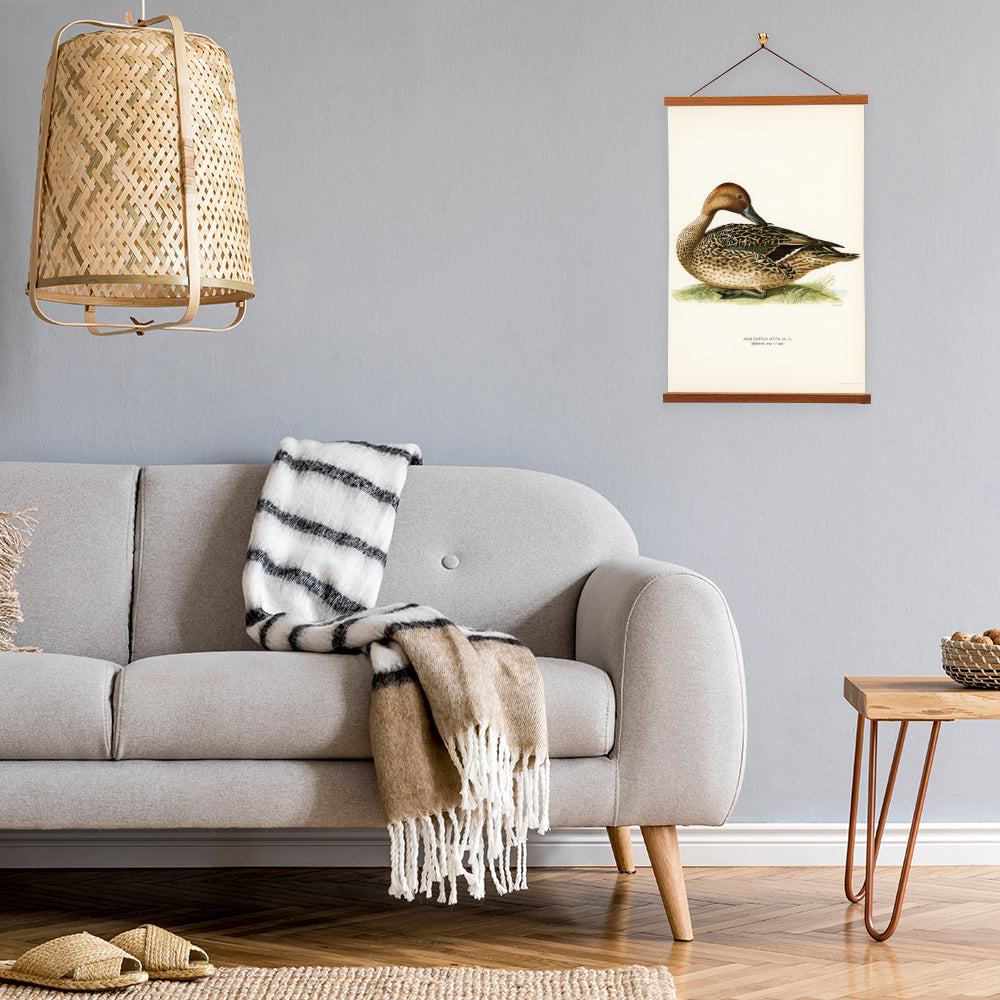 Our posters are elegantly suspended from a magnetic hanger crafted from rich walnut-colored wood, accentuated by a rustic rawhide string for a timeless and sophisticated display. Transform your space with this combination of artistry and craftsmanship.