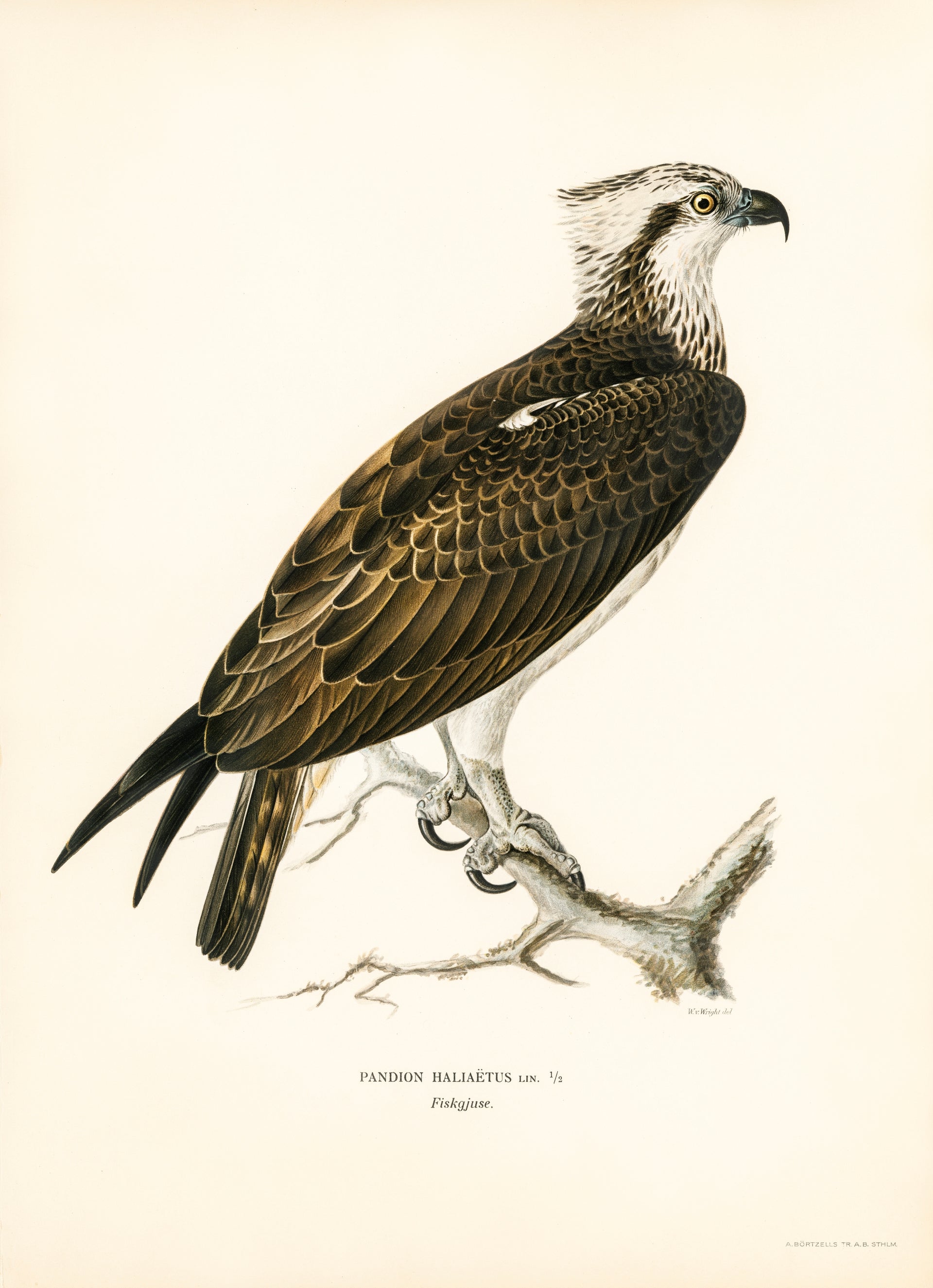 The von Wright Brothers' portrayal of the Osprey (Pandion haliaetus) captures the majestic raptor in exquisite detail. With precision, they depict the distinctive white head, powerful talons, and striking plumage of this bird of prey. Their artistry showcases the Osprey's predatory prowess and its role as a symbol of grace in the natural world.