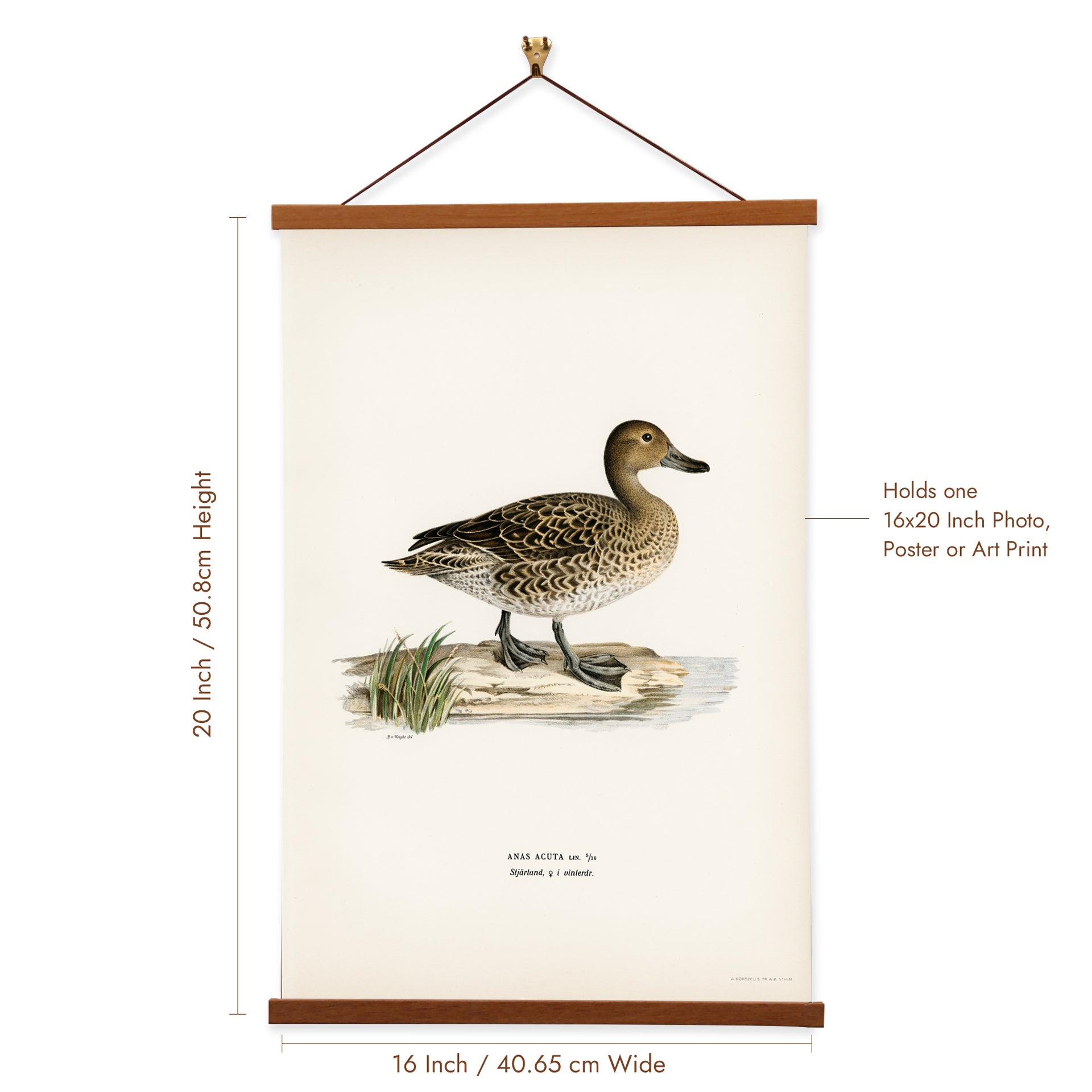 Our posters are elegantly suspended from a magnetic hanger crafted from rich walnut-colored wood, accentuated by a rustic rawhide string for a timeless and sophisticated display. Transform your space with this combination of artistry and craftsmanship.
