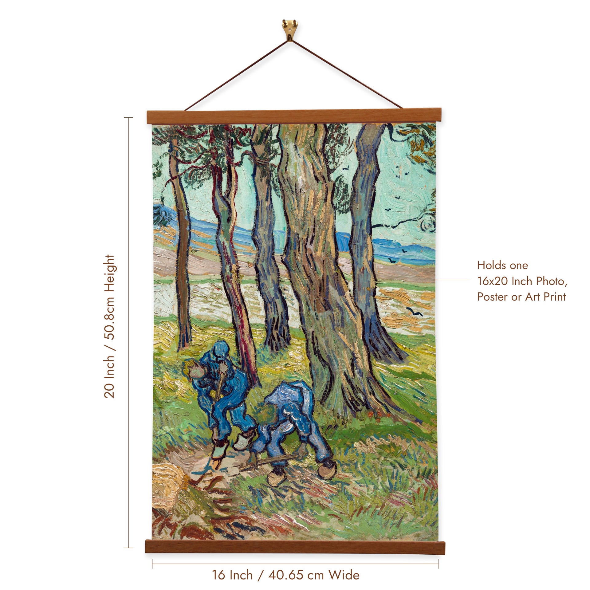 Our posters is elegantly suspended from a magnetic hanger crafted from rich walnut-colored wood, accentuated by a rustic rawhide string for a timeless and sophisticated display. Transform your space with this combination of artistry and craftsmanship.