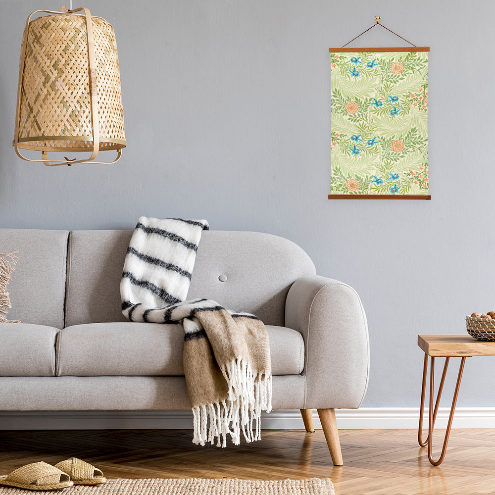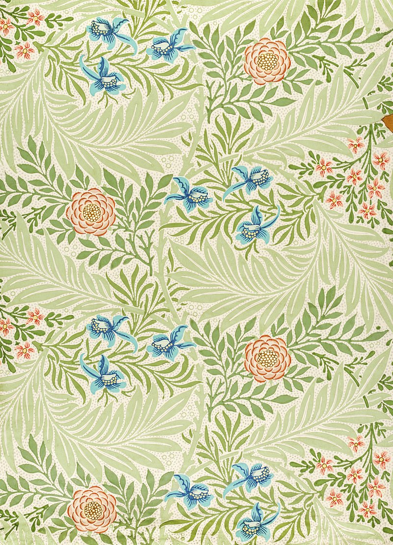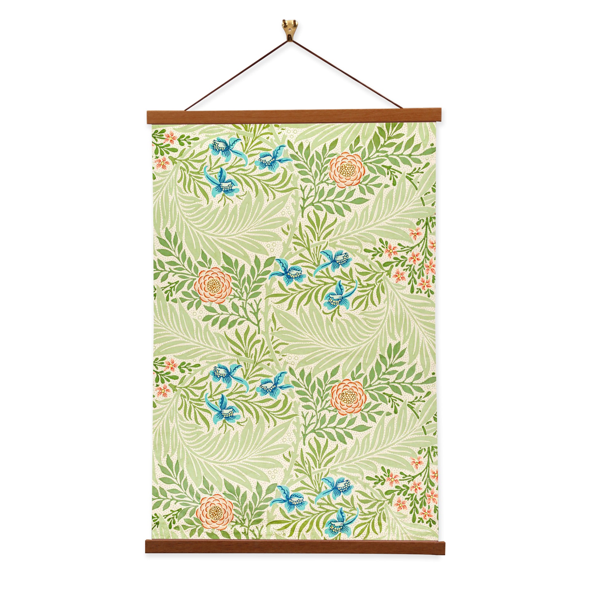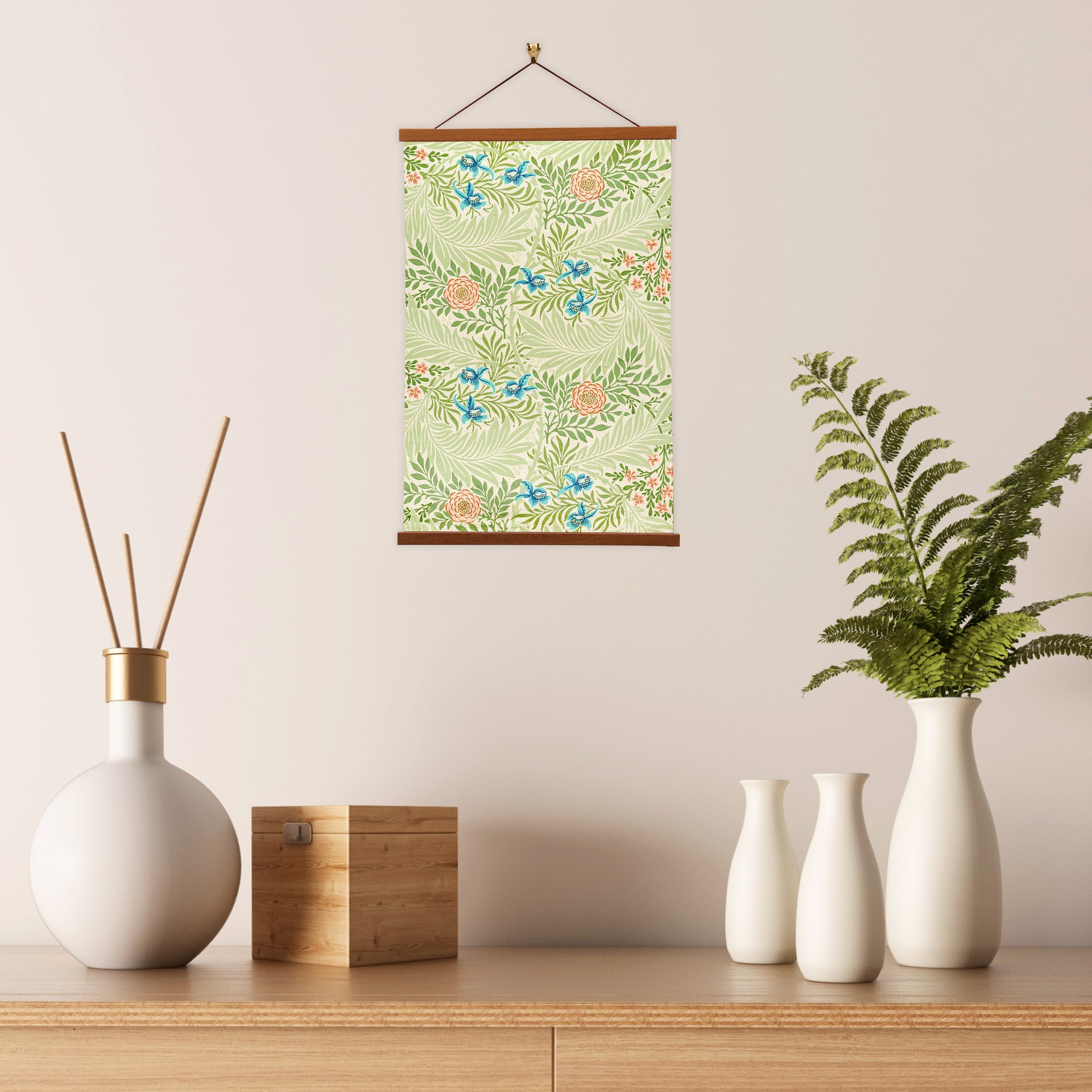 "Larkspur" (1874) by William Morris is a captivating tapestry design, exemplifying Morris's celebrated Arts and Crafts movement. This exquisite work features intricate patterns of larkspur flowers and foliage, showcasing Morris's dedication to the revival of handcrafted art and the aesthetic beauty of nature. A masterpiece of textile artistry, it remains a testament to Morris's enduring influence on design.