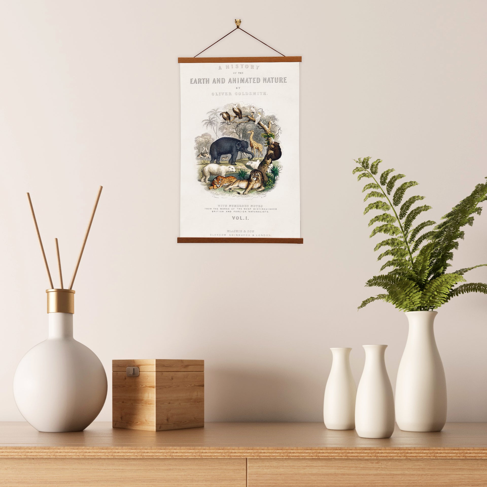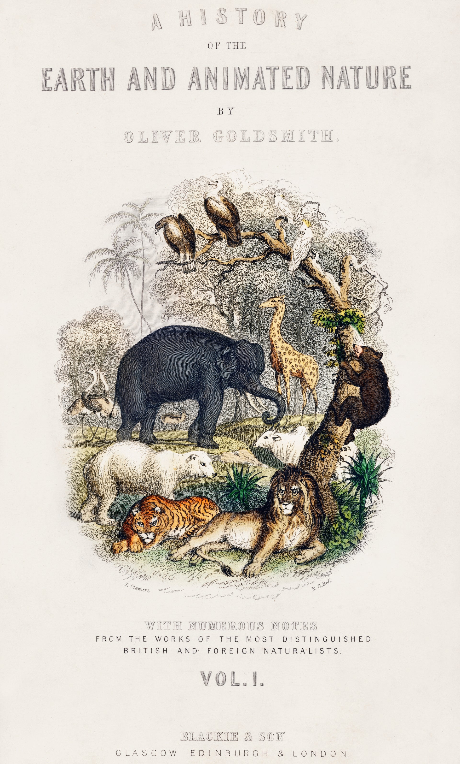 The cover of "A History of the Earth and Animated Nature" (1820) by Oliver Goldsmith is a stunning representation of the natural world's beauty. Rich in intricate details, it showcases various flora and fauna in a vibrant, hand-illustrated style, encapsulating the spirit of exploration and wonder that pervades Goldsmith's timeless work.