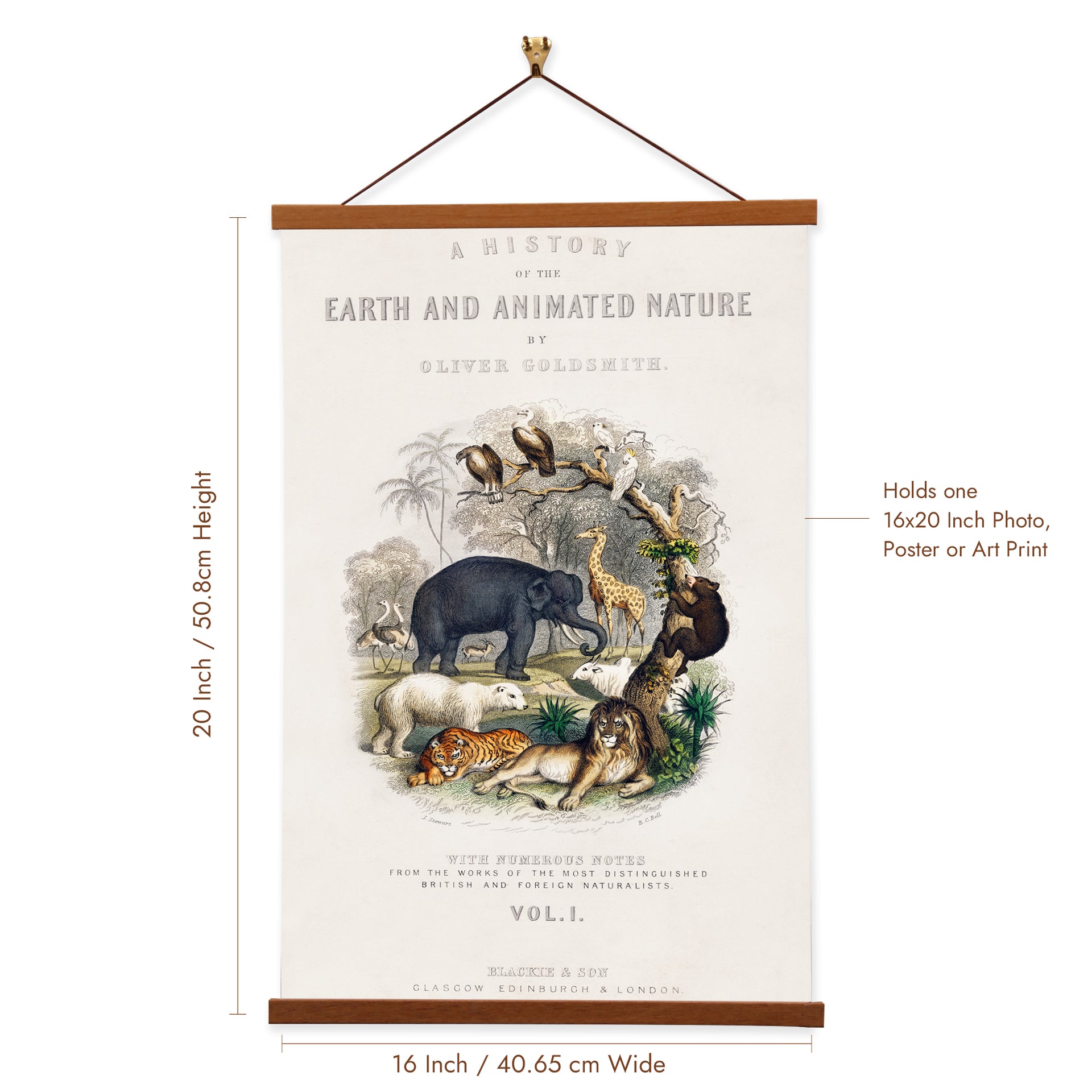 Our posters are elegantly suspended from a magnetic hanger crafted from rich walnut-colored wood, accentuated by a rustic rawhide string for a timeless and sophisticated display. Transform your space with this combination of artistry and craftsmanship.