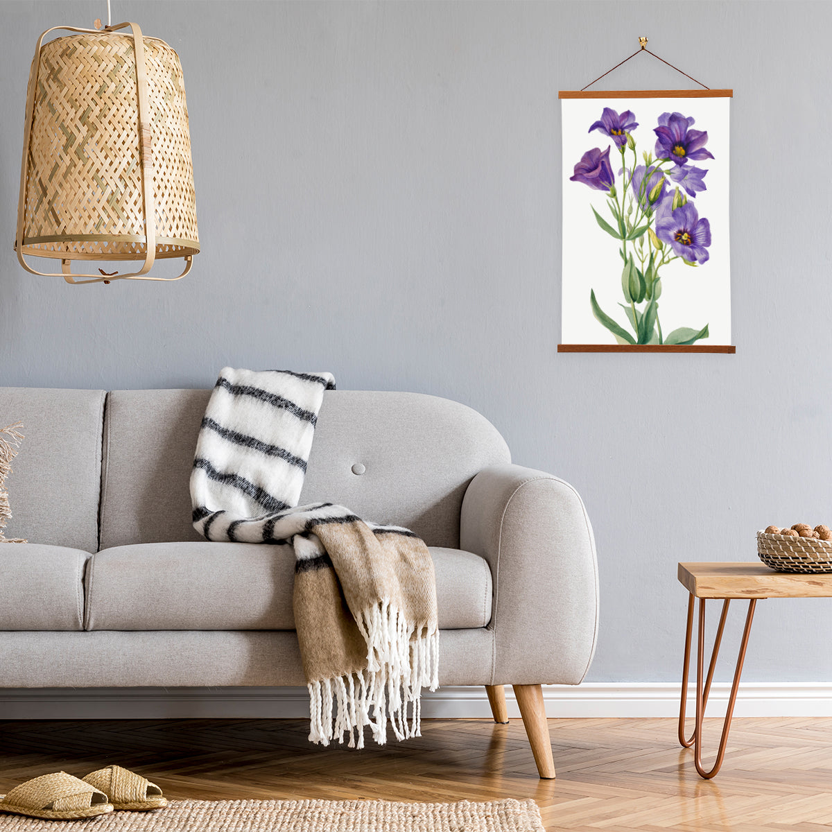 Our posters are elegantly suspended from a magnetic hanger crafted from rich walnut-colored wood, accentuated by a rustic rawhide string for a timeless and sophisticated display. Transform your space with this combination of artistry and craftsmanship.